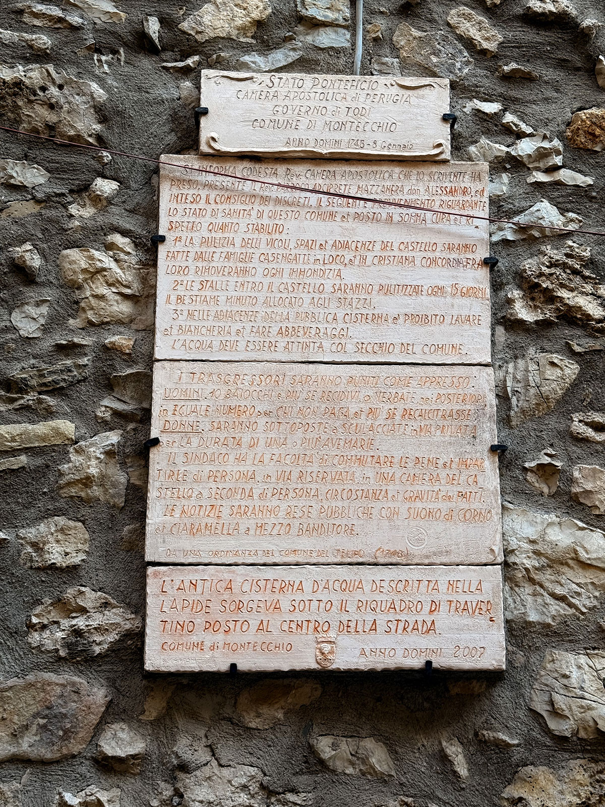 Nel Settecento, sotto il governatorato di Todi per lo Stato Pontificio, la comunità fissò norme chiare: pulizia dei vicoli affidata alle famiglie, stalle da ripulire ogni quindici giorni, divieto di lavare o abbeverare presso la cisterna; l’acqua si attingeva solo col secchio del Comune.